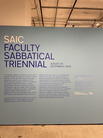 2025 SAIC Faculty Sabbatical Triennial, on view at SAIC Galleries from August 25 to December 6. This expansive exhibition celebrated the creative research, scholarly pursuits, and innovative practices of faculty members who completed sabbaticals or other paid leaves over the past three academic years.